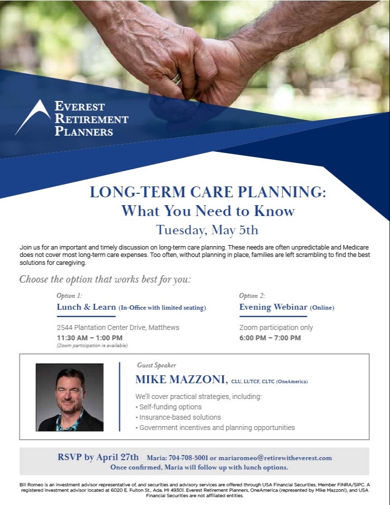 As a "value-add" for our Everest Matthews family, we’ve invited Mike Mazzoni from OneAmerica to walk us through today’s long-term care planning landscape, including hybrid strategies that offer flexibility, protection, and peace of mind. This is one of those topics that’s easy to put off—but incredibly valuable to get right.